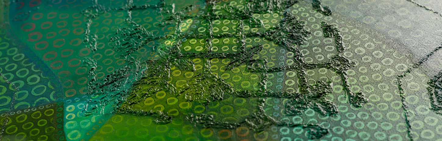 Sanatçı, renklerin parlak alanlarını oluşturmak için akrilik boya kullanır. İçlerinde, özel bir kazıma aracı kullanarak, ıslak haldeki boyaya birçok küçük daire çizer ve tuval yüzeyinden rengi kazır. Sonuç olarak, tuvalin yüzeyi üzerinde alt katmanlarda bulunan diğer renkler kazıma sonrası görünür hale gelir. Her iki durumda da, sanatçı kompozisyonun yapısını düzenleyen izler bırakır.